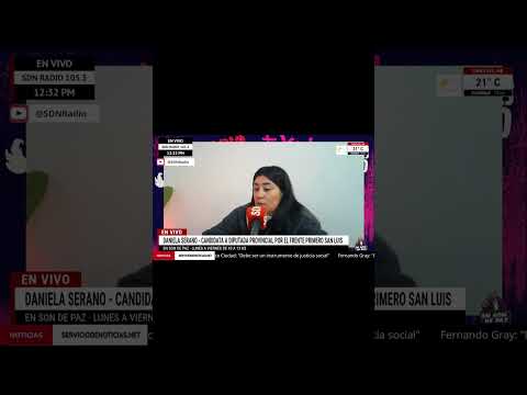 🎙Daniela Serrano, candidata a diputada provincial por el frente Primero San Luis, pasó por #EnSonDePaz✌ y habló, entre otras cosas, de la situación económica actual de los mas jóvenes💸 Mirá la entrevista completa en nuestro canal de YouTube 🎥 (https://youtu.be/hlC7DNc3QXY) 📲 Seguinos en YouTube: @SDNRadio | 🌍 serviciodenoticias.net | 📻 105.3 en el Gran San Luis o en la cadena SDN Federal. SDN Radio, la radio que te da todo.