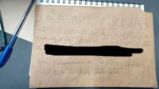 El manuscrito apareció en la guardia de la Comisaría Vecinal 4D de Barracas. Se indicó un nombre y una dirección a cinco cuadras de la Villa Zavaleta. Leer más